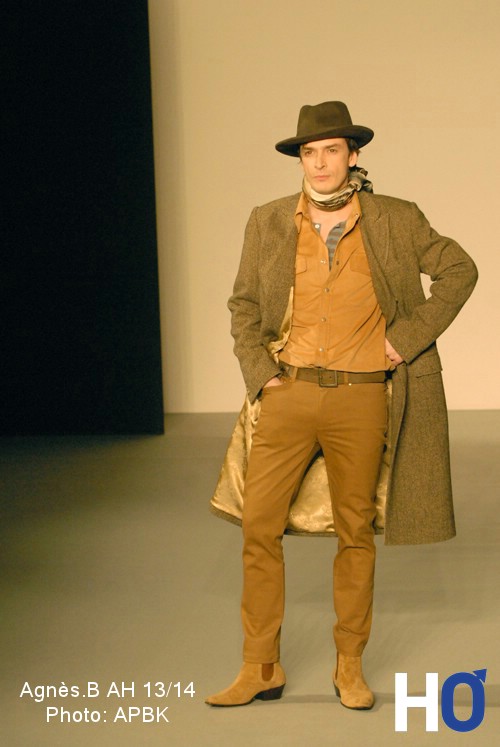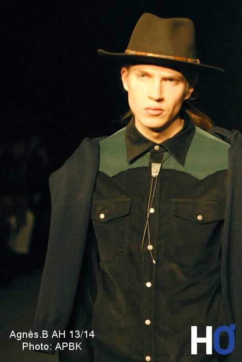 Intantinée classique, la collection Agnès B se plonge, comme à l’habitude, dans de multiples références culturelles pour parfaire le vestiaire masculin de l’hiver 2013. Aux intonations western, la créatrice travail sur les pistes d’artistes tels Howard Hawks, Wahrol ou encore Gavroche pour passer d’un univers à l’autres. Les pièces de la collection qui en découlent affirment l’identité de la Maison.