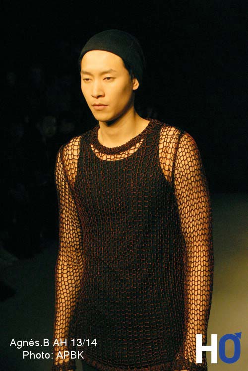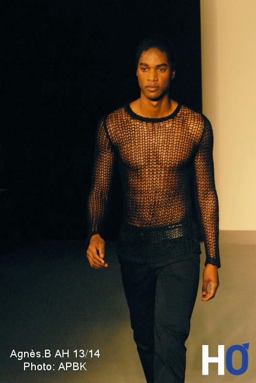 Une chose est sur, la chemise à empiècements sur les épaules sera obligatoire. Il en est de même pour le chapeau bien entendu…Seul le bruit des éperons manque pour parfaire les looks. Plus grunch, la maille ajourée se veut également adepte des corps et contrebalance le caractère parfois trop assagie de la collection. Terminant son défilé sur les chapeaux de roues, Agnès B fait même frissonner de plaisir l’assemblé en invitant à défiler le champion olympique français de judo Teddy Riner. Un coup de maitre.