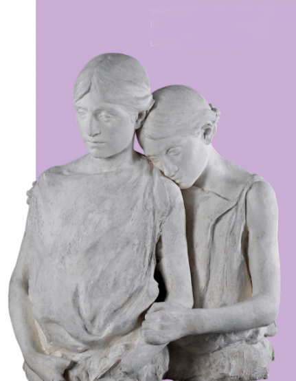 - Marie Cazin,Jeunes fillesouJeunesse, 1886, plâtre, 72 x 60 x 37,9 cm,Tours, musée des Beaux-Arts