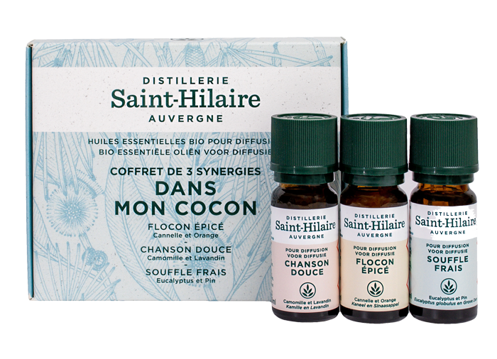Ce coffret au nom évocateur renferme 3 synergies d’huiles essentielles biologiques 100% pures et naturelles, adaptées à la diffusion : Flocon épicé, Souffle frais et Chanson douce. De quoi passer de belles soirées cocooning à la maison, en hiver ou à tout autre moment,