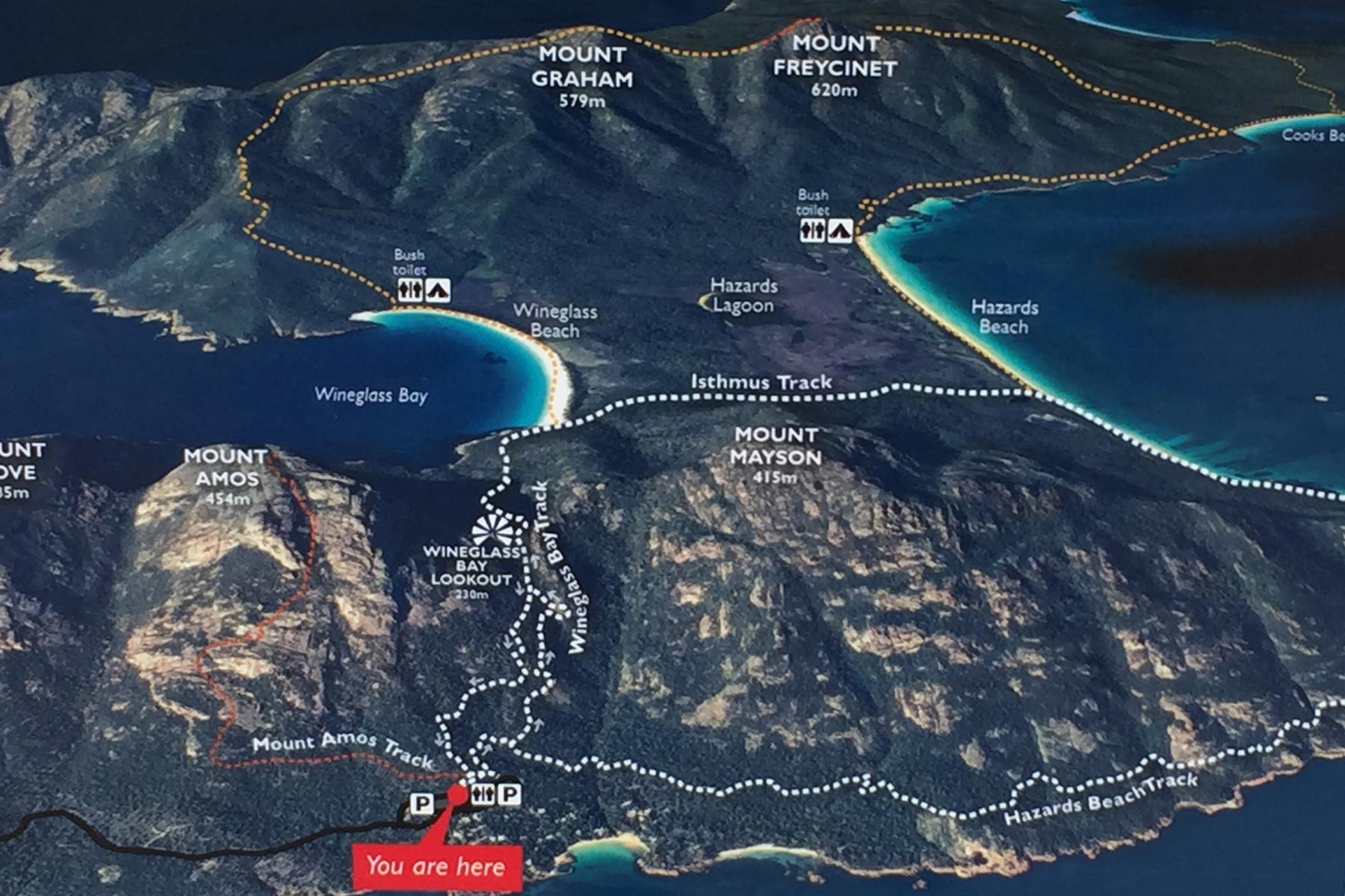 Une douche et un petit déjeuner plus tard, direction Wineglass Bay. Premier arrêt au point d’infos, pour acheter le pass qui nous permettra d’entrer dans les parcs nationaux.