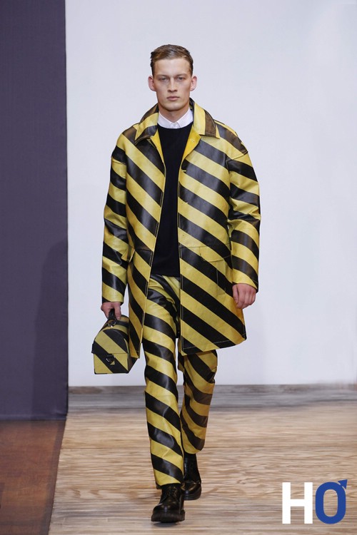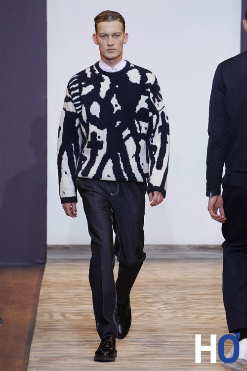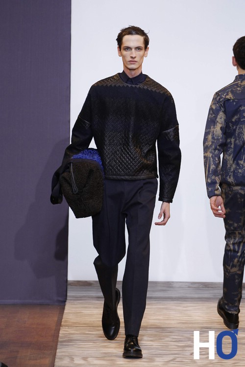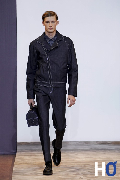 Entre passé, présent et futur, ce chassé-croisé propre à la collection Homme automne-hiver 2013-2014 est représenté par une sorte de pont sur lequel les mannequins défilent. Le créateur nous confiera plus tard que ce pont est celui du pont des arts sous lequel coule la Seine comme coule temps. Nous pouvons rapprocher ce détail de la précédente collection printemps-été où l’homme s’était inspiré de Venise Beach.