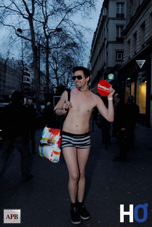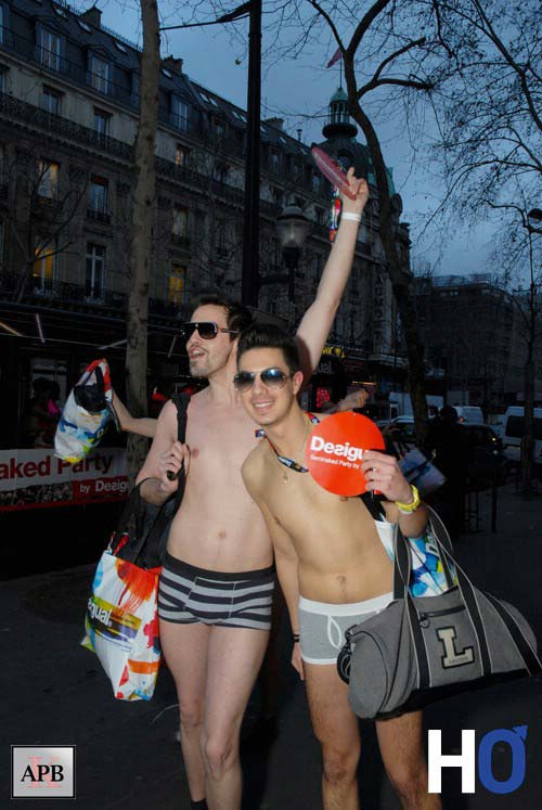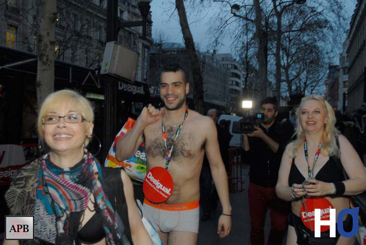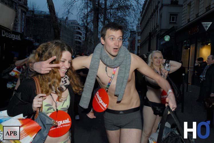 Le concept est le suivant 2 cars sont arrivés devant le Desigual Store, avenue des Capucines, avec à son bord des jeunes hommes et jeunes filles en sous-vêtements.