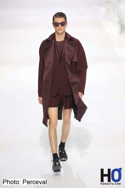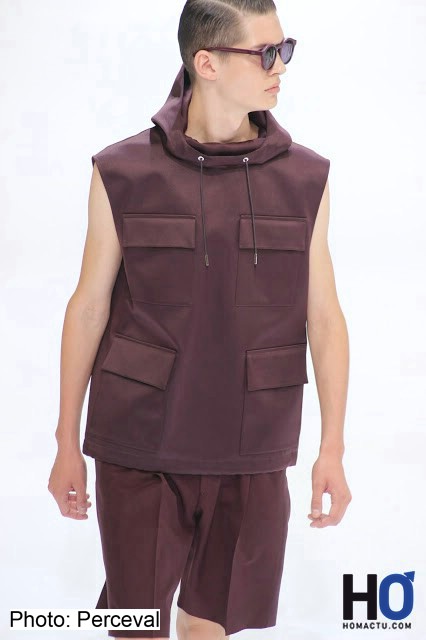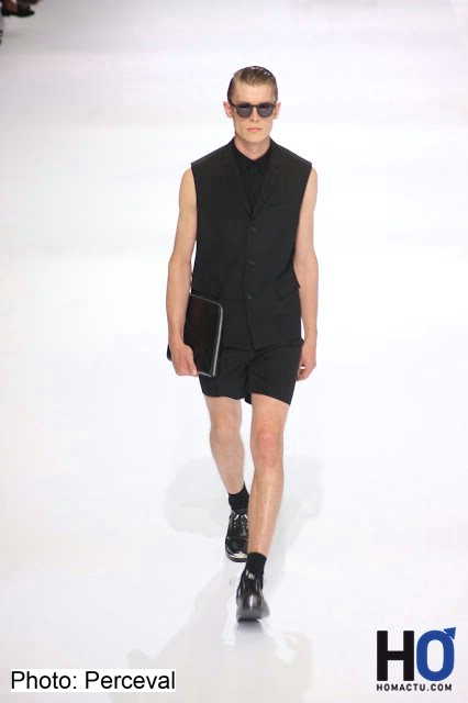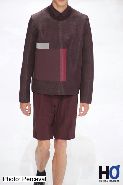 Le créateur le dit lui même, il a voulu explorer une vision minimal baroque afin de parfaire une dressing d’élégance sans restrictions. De ce point de départ le créateur apporte une vraie rigueur. Les coupes très carrées s’alimentent de matières modernes jouant tantôt d’effet mats tantôt de touches plus brillantes. Mixant également les couleurs avec en autre des bleus et des bordeaux, les pièces s’accaparent une vision abstraite où les cubes habillent la silhouette de contrastes. On retrouve de là un grand nombre de vestes, souvent sans manches auxquels s’assujettissent shorts et chemises pour convenir d’un vestiaire qui s’éprend de taylorisme.