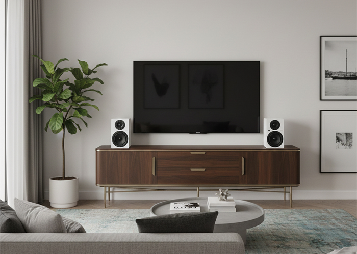 Grâce à son entrée HDMI ARC, la Prestige Facet II 6 Active BT peut remplacer une barre de son pour les utilisateurs recherchant une solution stéréo élégante et performante. La connexion ARC assure une communication directe avec le téléviseur, avec réglage du volume via la télécommande de la TV et synchronisation automatique. Ce mode de fonctionnement permet de profiter d’une restitution plus précise que celle d’un système TV classique, avec une meilleure spatialisation, un dialogue plus clair et une scène sonore plus crédible.