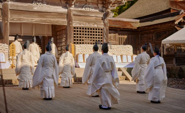 Le festival débute traditionnellement sur la plage Inasa-no-hama par une cérémonie spectaculaire d’accueil des dieux (kami-mukae-sai). Après la tombée de la nuit, les prêtres allument de grands feux rituels sur la plage et escortent les kami (ou divinités) en les protégeant du regard du public rassemblé à l’aide de grands draps blancs. La procession conduit les divinités de la plage jusqu’au grand sanctuaire Izumo Oyashiro, où elles se réuniront pendant le festival. Parmi les rituels publics figurent aussi des danses kagura, sacrées et symboliques, reflétant les mythes locaux et mettant bien en lumière l’importance d’Izumo comme point névralgique du shintoïsme. Même le nom de la ville, « Izumo » ou les « nuages qui apparaissent », fait écho à cette tradition, les divinités étant supposés arriver des quatre coins du pays en chevauchant des nuages. Les cérémonies du Kamiarisai sont marquées par le silence et la gravité, l’atmosphère recueillie contrastant avec les manifestations festives souvent associées aux matsuri japonais. Par opposition, Izumo propose une expérience du sacré plus intime. Lors du festival, c’est tout un territoire qui se tait pour accueillir l’invisible : la ville entre dans le silence, les rituels sont feutrés pour ne pas déranger la réunion divine, et même les travaux de construction sont suspendus et la musique assourdie. Une expérience rare et forte.