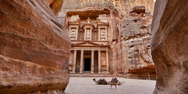 Petra est une cité antique située au sud-ouest de la Jordanie. C’était autrefois une ancienne capitale nabatéenne et est devenue l’un des plus grands joyaux de l’architecture et de l’ingénierie anciennes du Proche-Orient. Cette ancienne cité est entourée de falaises rouges et est célèbre pour ses monuments sculptés à même la roche, ses bâtiments complexes et ses trésors architecturaux. Petra est considérée comme l’une des sept merveilles du monde moderne et est inscrite au patrimoine mondial de l’UNESCO depuis 1985. Elle est connue pour ses structures de grès rouge et rose, sculptées à même la roche et qui datent de l’époque des Nabatéens, entre 400 avant J.-C. et 106 après J.-C. Les points forts de la ville sont le temple El-Deir, le tombeau de la reine, le tombeau du gouverneur, le Lion Triclinium et le tombeau du sacrifice. La ville est également célèbre pour ses nombreux trésors architecturaux, notamment ses escaliers, ses arcs, ses colonnes et ses fontaines.