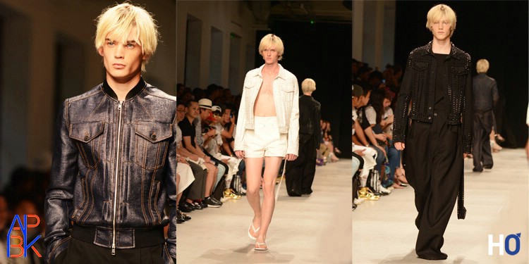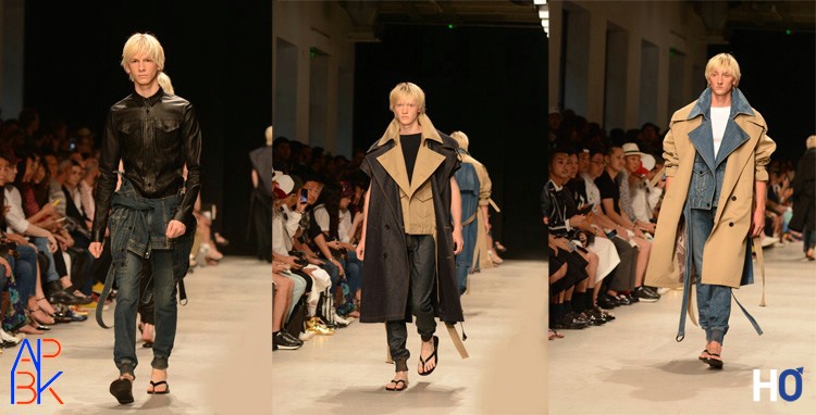 Le vêtement doit être regardé plus longuement pour qu’on découvre le jeu de formes et superpositions. Les manches des vestes sont longues, très longues et allongent la silhouette pour la rentre plus longiligne et casser les quelques volumes que l’on peut encore retrouver par exemple sur les pantalons qui sont larges. Les shorts quant à eux sont tailles hautes et allongent la silhouette pour une construction linéaire de la collection renforcée par les fermetures éclairs. Cette collection printemps-été 2016 présente un nouvel homme Juun J., un homme androgyne fan de demin et de taylorisme qui empreinte des détails féminins. Cette ambivalence des genres est accentuée par les coupes de cheveux blond platine. Le denim apparaît donc sous toutes les formes. Qu’il soit brute, délavé ou teinté, le denim est la matière principale de cette collection et s’inscrit à merveille dans les proportions et formes des pièces ainsi que dans la construction linéaire des vêtements ainsi que l’allure nonchalante.