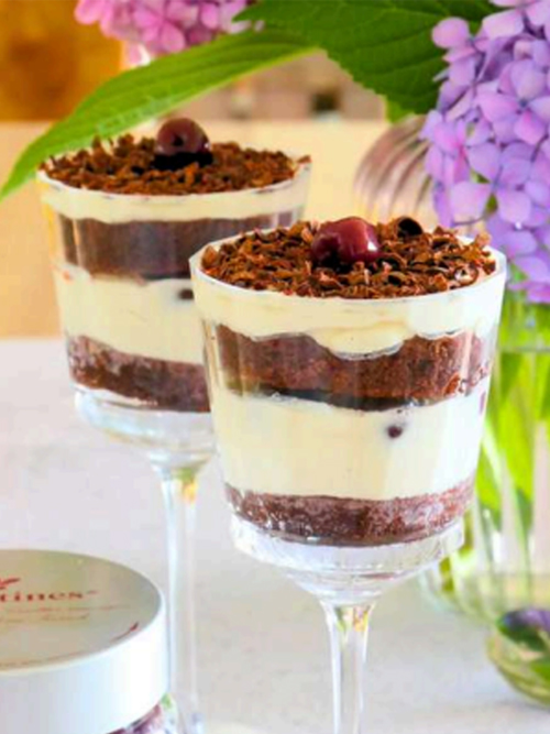 3. Ajouter une couche de crème au sirop, puis disposer 6 Griottines® par verrine.