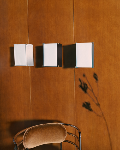 Les formes géométriques des appliques Boxie dessinent des angles vivants qui, dans un subtil jeu de clair-obscur, dévoilent un autre paysage intérieur.