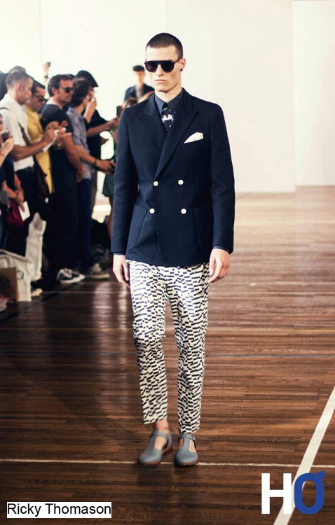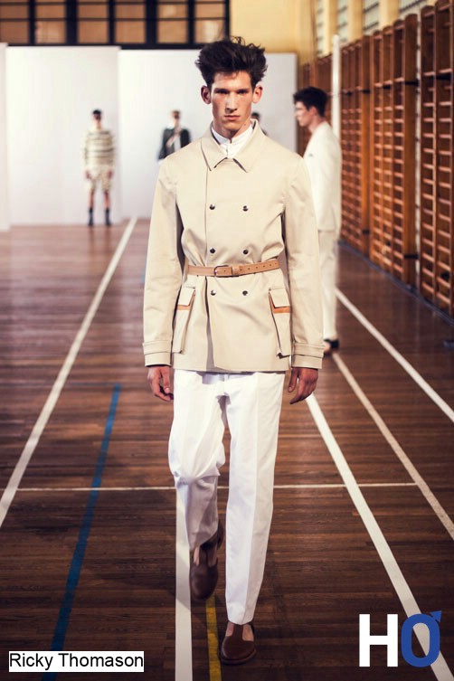 Crée en 2008 par Mathieu de Ménonville et Rémi Laquintane, la Maison Mélinda Gloss fonde sa collection du printemps/été 2014 sur l’exploitation d’un dressing entre intonation classique et modernisation. Les pièces essentielles du vestiaire masculin sont ainsi revues et corrigées dans des perspectives plus contemporaines afin de rentrer en accord avec la tendance chic mais décontractée que les créateurs nous concocte pour les saisons à venir.