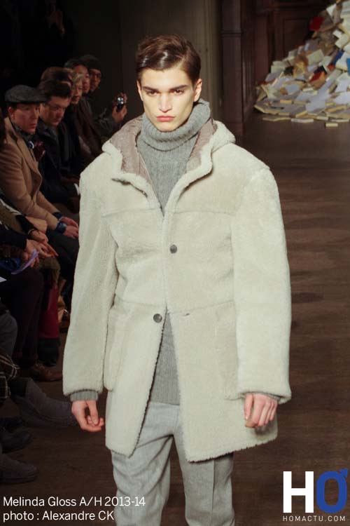 A la recherche de la perfection au travers de la simplicité, Melinda Gloss tire son inspiration d’un mélange d’influences artistiques, et d’une rigueur toute militaire, que l’on retrouve dans la coupe des survestes et des trenchcoats.