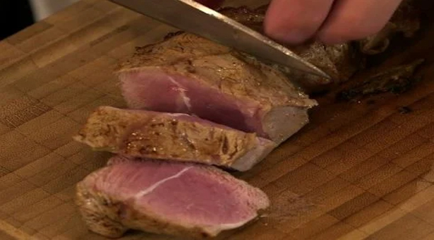 Déposer le veau assaisonné dans le sautoir bien chaud et l’arroser généreusement avec le jus de cuisson à l’aide d’une cuillère à soupe.