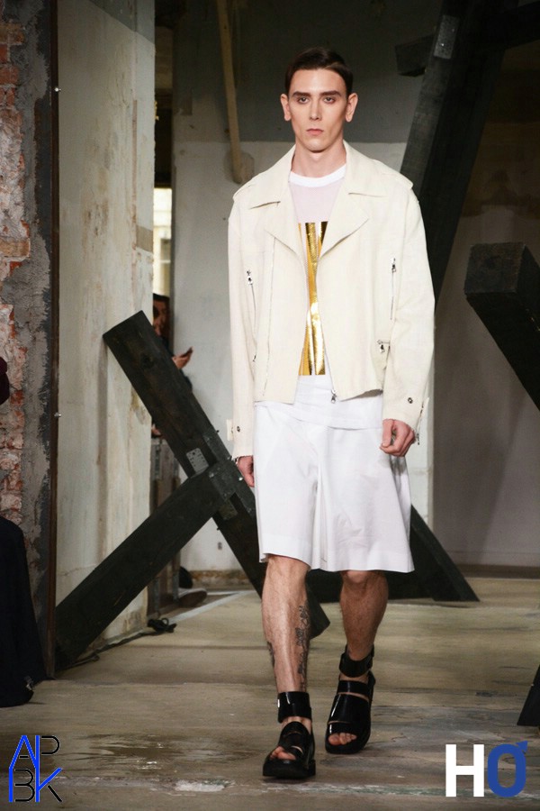 La collection Songzio s’inspire pour cette saison estivale de la nature organique et végétale. Présentant ses silhouettes dans un décor en décomposition parmi des troncs d’arbres comme noircie par la fumée, le créateur propose une inspiration qui se rapproche de celle de la collection hivernale. Les motifs de la forêt laissent place à une inspiration plus subtile et plus organique que l’on remarque franchement dès les premières silhouettes avec une forte présence du noir.