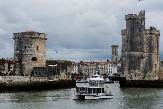 Escapade en croisière avec Inter-îlesCatamarans : une sortie en mer à bord d’un maxi-catamarans depuis La Rochelle, offrant une vue sur les Tours à la sortie du port et un bon bol d’air pur en mer.